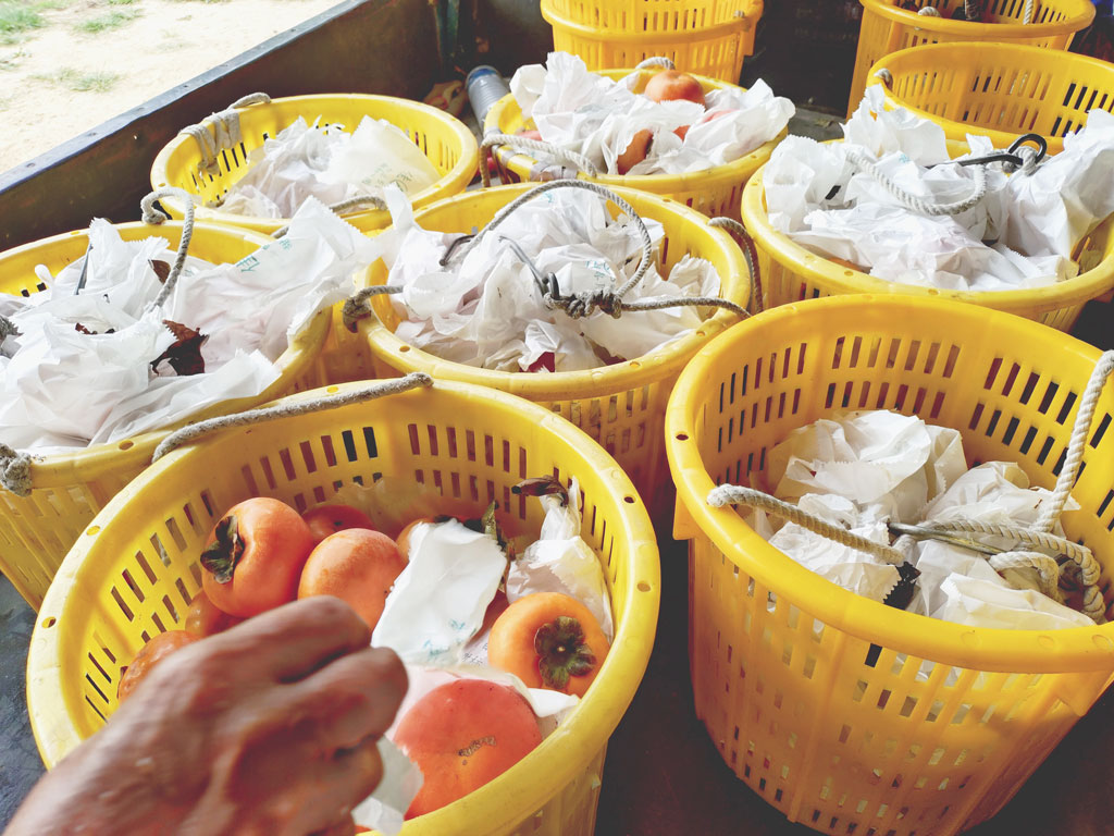 "富有"已經開始採收了,10月10日時,"前川次郎"產量過少,所以都給小攤商賣。